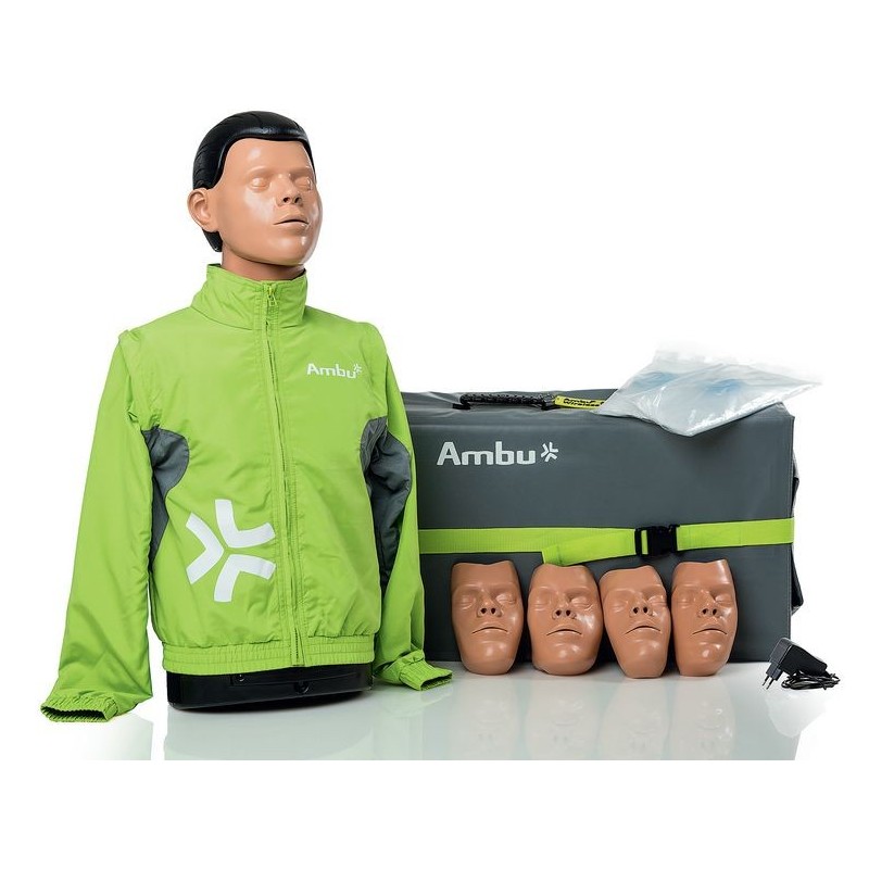 Ambu Man est un mannequin de formation et d'instruction hautement sophistiqué, destiné à simuler des conditions anatomiques et physiologiques correctes et réelles lors d'une réanimation cardio-pulmonaire pratiquée par respiration artificielle et compression de la cage thoracique, il est également idéal pour la formation à la défibrillation.