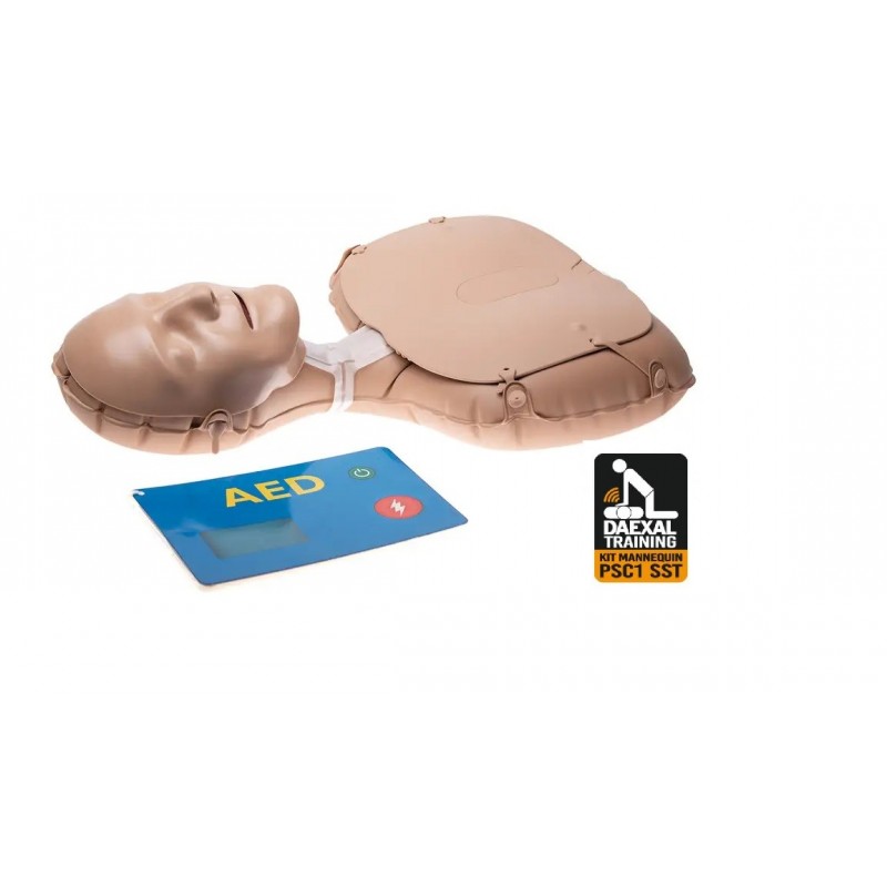 - Un défibrillateur automatisé factice avec éléctrodes adhésives