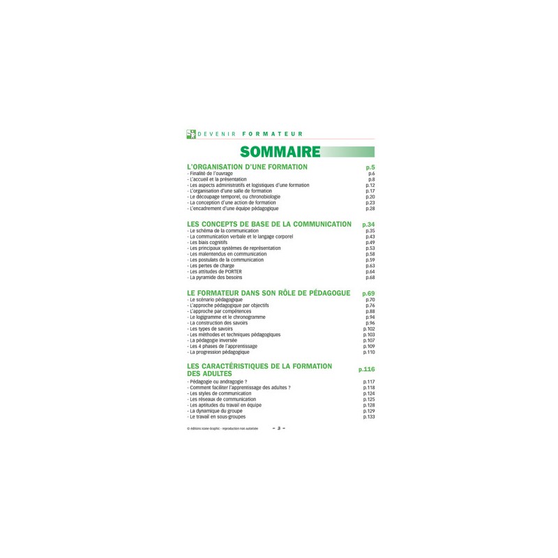 Loin des concepts trop théoriques et techniques, cet ouvrage de vulgarisation se veut pragmatique et concret. C’est accompagné de plus de 580 photos et illustrations qu’il a pour vocation de présenter de manière synthétique les concepts clés issus de la pédagogie, de l’andragogie, de la communication et de l’ingénierie pédagogique afin qu’un formateur professionnel ou occasionnel puisse réaliser des formations dans tous les domaines d’activités.