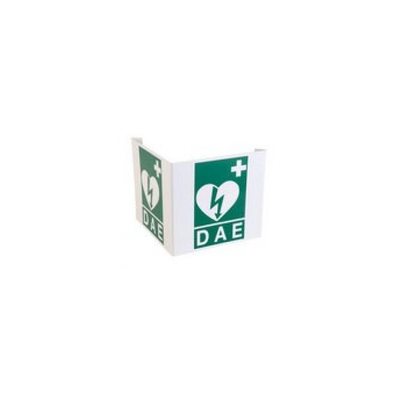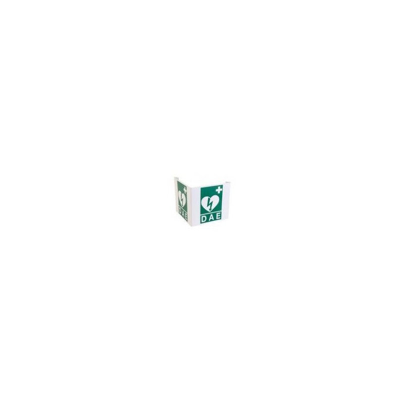 Il est recommandé de positionner l'applique murale DAEXAL au dessus du défibrilateur. Sa forme en V lui permet d'être vu aussi bien de face que de côté.
