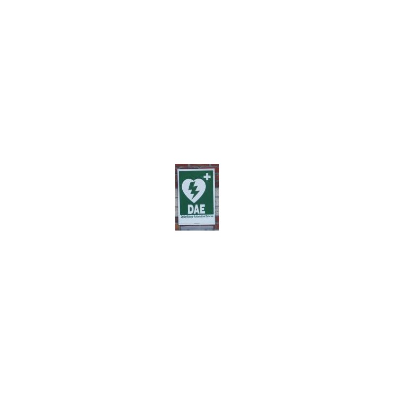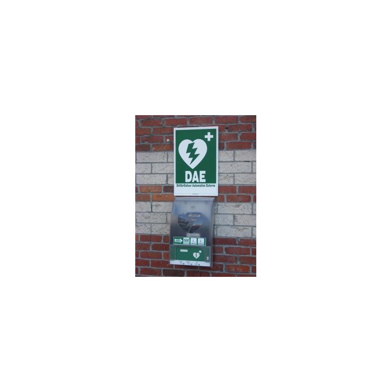 Plaque destinée à être vissée au dessus des boîtiers de protection pour défibrillateur, en intérieur ou extérieur